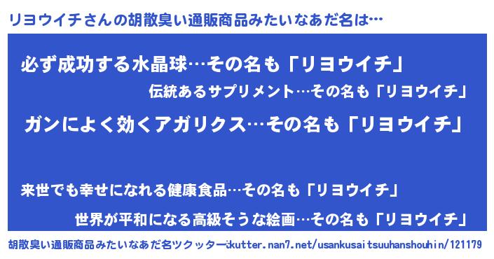 | 意味不明あだ名 | 『自称リヨウイチ』『ペロリンリヨウイチ』 |