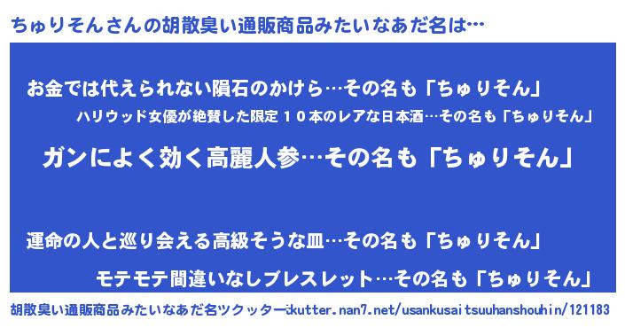 | 意味不明あだ名 | 『自称ちゅりそん』『ペロリンちゅりそん』 |