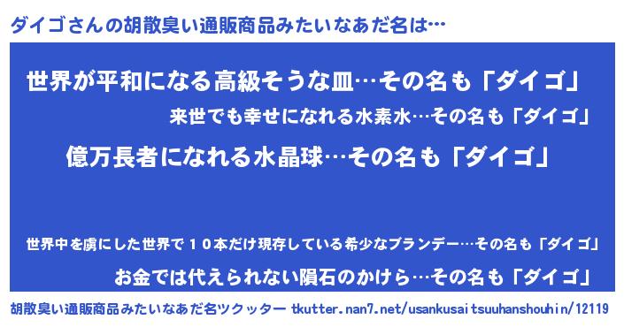 | 意味不明あだ名 | 『ペロリンダイゴ』『ダイゴフォーエバー』 |