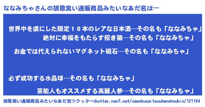 | ヘコむあだ名 | 『ななみちゃ(笑)』『ななにー』 |