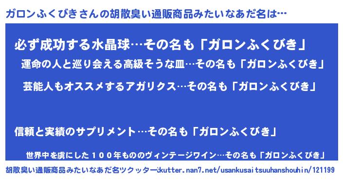 ガロンふくびきさんの胡散臭い通販商品みたいなあだ名をツクッター!