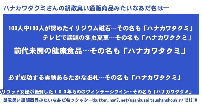 | ヒーロー風カッコイイあだ名 | 『ネオハナカワタクミ』『仮面ハナダー』 |