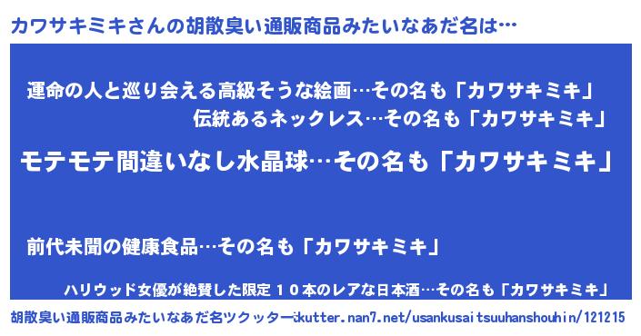 | ヒーロー風カッコイイあだ名 | 『スーパーカワサキミキ』『仮面カワダー』 |