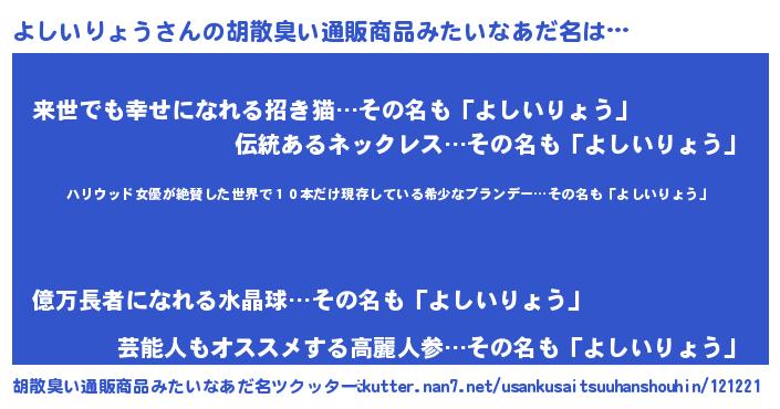 | ヘコむあだ名 | 『よしいりょう(遠い目)』『よしっ子』 |