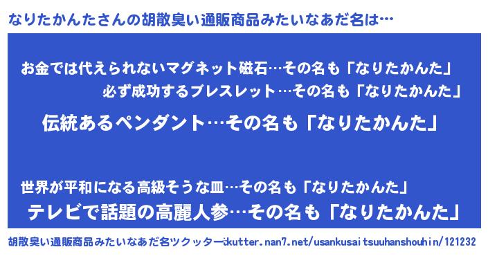 | ヘコむあだ名 | 『なりぷりん』『なりにー』 |