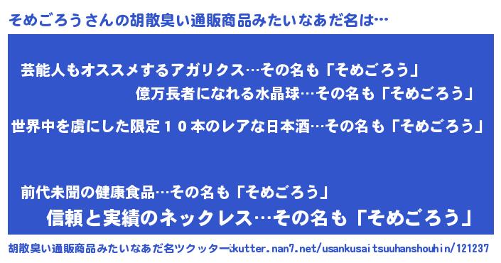 | 意味不明あだ名 | 『住所不定無職そめごろう(56歳)』 |
