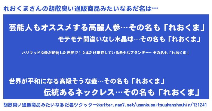 | 意味不明あだ名 | 『住所不定無職れおくま(74歳)』 |