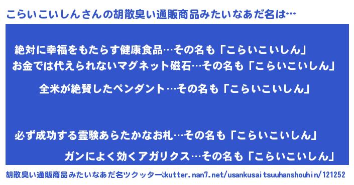 | 意味不明あだ名 | 『とにかく怪しいこらいこいしん』 |