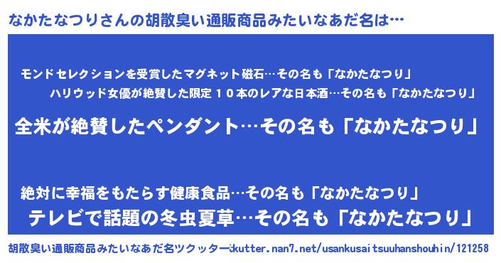 | ヘコむあだ名 | 『なかっぺ』『なかたなつり(苦笑)』 |