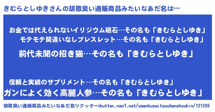 | ヘコむあだ名 | 『きむらとしゆき(小並感)』『きむにゅー』 |