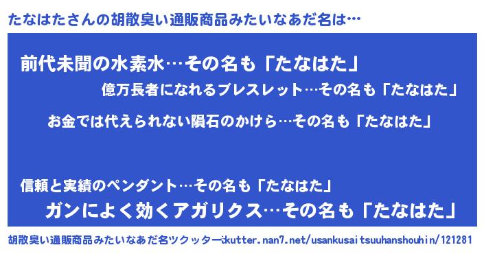 | ヘコむあだ名 | 『たなはた(苦笑)』『たなっふぃ~』 |