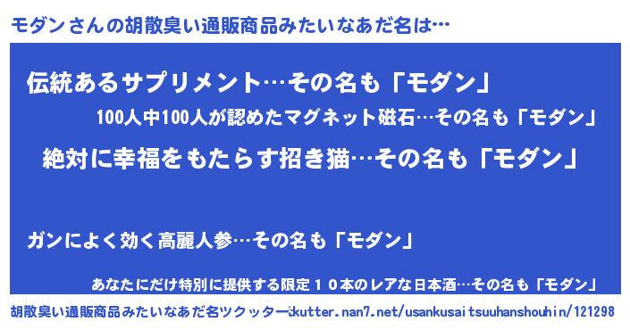 | 意味不明あだ名 | 『永久保存モダン』『自称モダン』 |