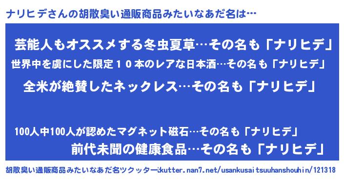 | ヘコむあだ名 | 『ナリっ子』『ナリヒデ(遠い目)』 |