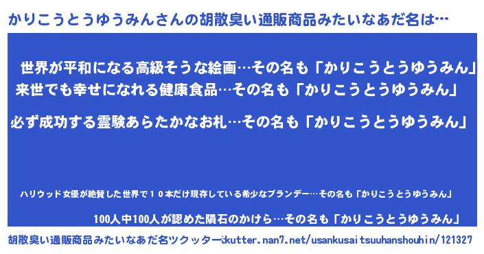 | ヒーロー風カッコイイあだ名 | 『スーパーカリコウトウユウミン』 |