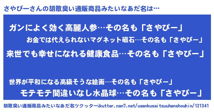 | 意味不明あだ名 | 『永久保存さやぴー』『自称さやぴー』 |