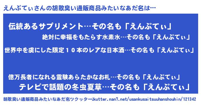 | 意味不明あだ名 | 『住所不定無職えんぷてぃ(41歳)』 |