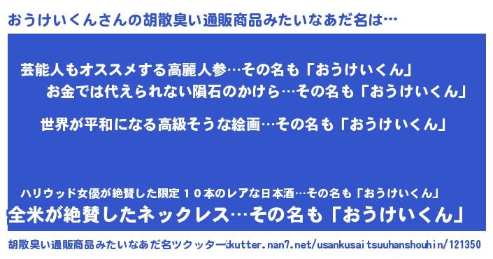 | 男性向けラノベタイトル風あだ名 | 『やはりおうけいくんの青春ラブコメはまちがっている 』 |