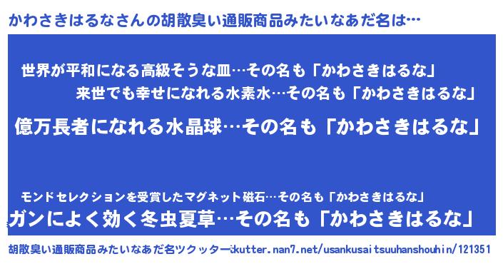 | 肩書あだ名 | 『かわさきはるなディレクター』 |