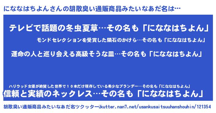 | 欧米人風あだ名 | 『にななはちよんクリステル』 |