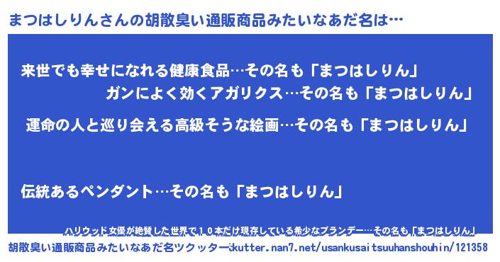 | 意味不明あだ名 | 『まつはしりんフォーエバー』 |