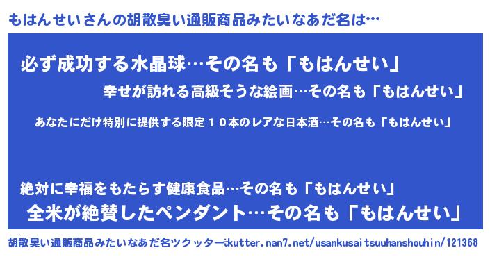 | ヒーロー風カッコイイあだ名 | 『仮面モハダー』『スーパーモハンセイ』 |