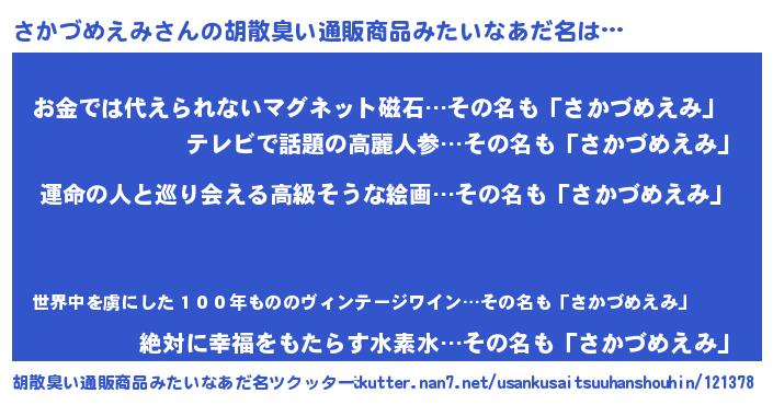 さかづめえみさんの胡散臭い通販商品みたいなあだ名をツクッター!