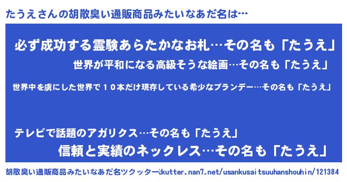 | ヒーロー風カッコイイあだ名 | 『仮面タウダー』『スーパータウエ』 |