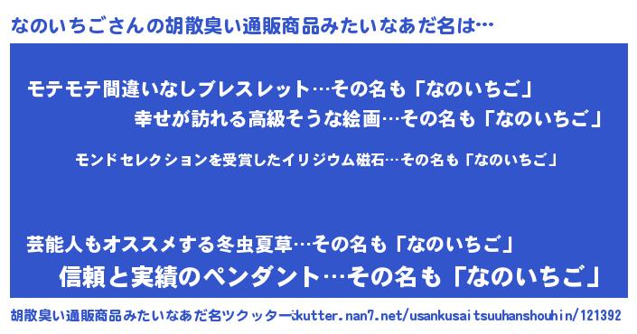 | 男性向けラノベタイトル風あだ名 | 『うちのなのいちごが世界を掌握している!』 |