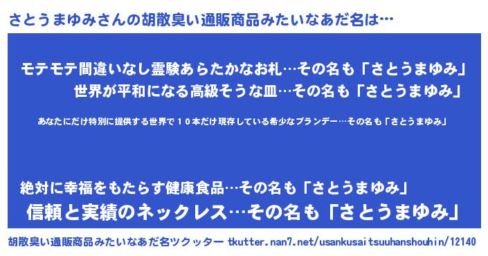 | 伝説のあだ名 | 『封印されしスナイパーさとうまゆみ』 |