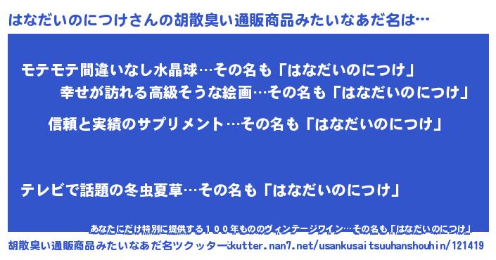 | 欧米人風あだ名 | 『ウサインはなだいのにつけ』 |