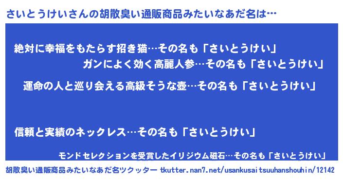 | 意味不明あだ名 | 『さいとうけいフォーエバー』 |