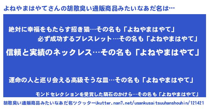 | ヘコむあだ名 | 『よねっ子』『よねやまはやて(笑)』 |