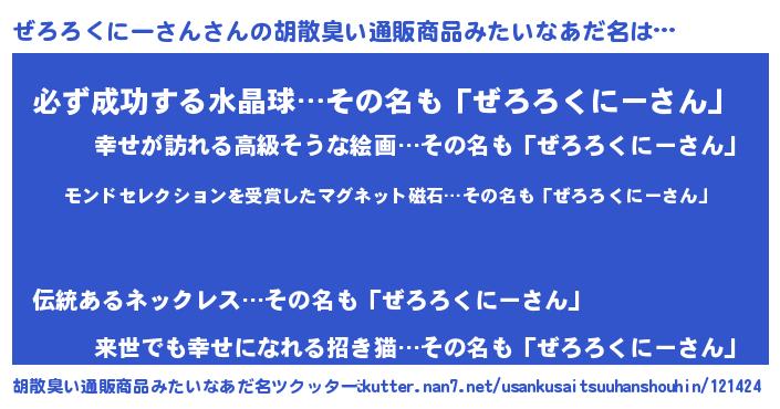 | ヘコむあだ名 | 『ぜろふぇ~』『ぜろろくにーさん(笑)』 |