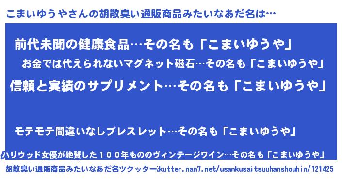 | ヘコむあだ名 | 『こまを』『こまいゆうや(笑)』 |
