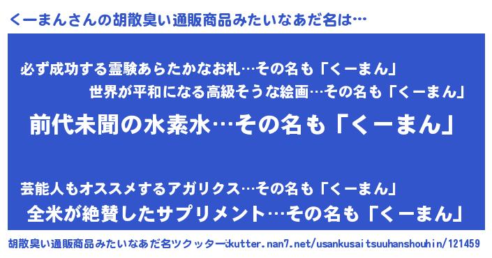 | ヘコむあだ名 | 『くーまん(苦笑)』『くーもー』 |