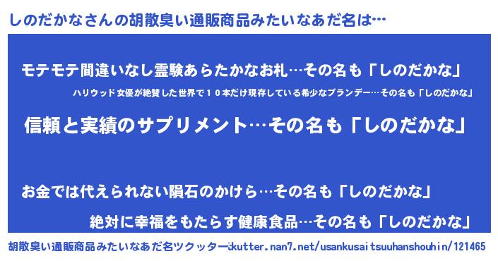 | 恥ずかしいあだ名 | 『シノリンリン』『プリティーしのだかな』 |
