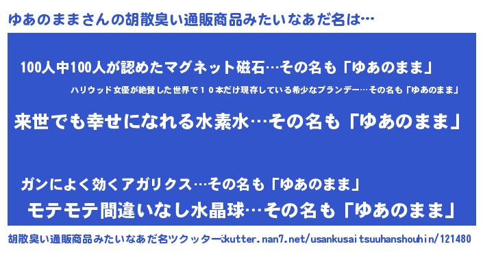 | 意味不明あだ名 | 『永久保存ゆあのまま』『自称ゆあのまま』 |