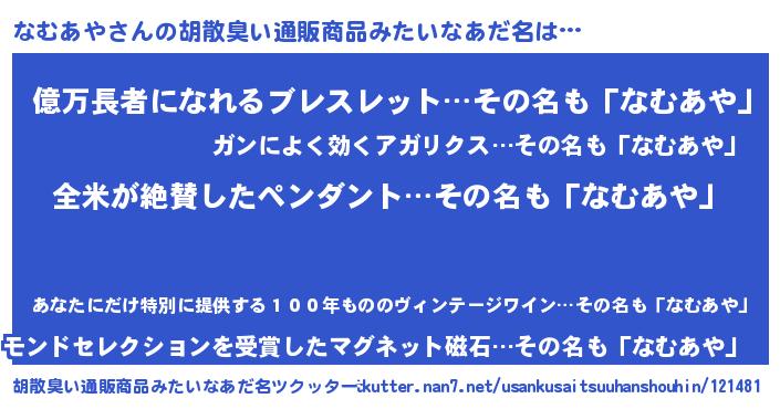 | 意味不明あだ名 | 『とにかく怪しいなむあや』 |