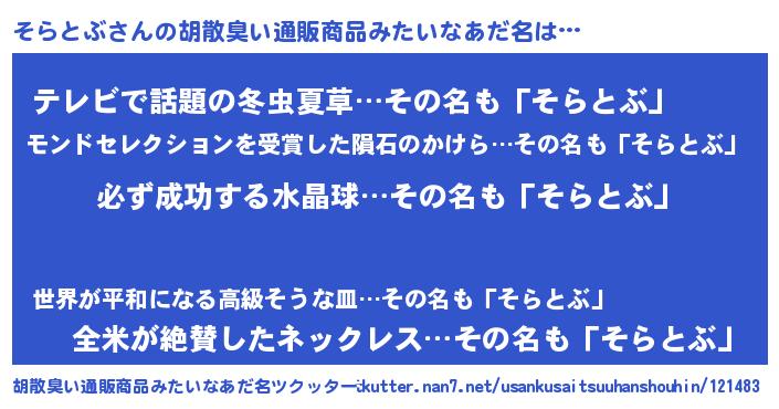 | 意味不明あだ名 | 『ペロリンそらとぶ』『自称そらとぶ』 |