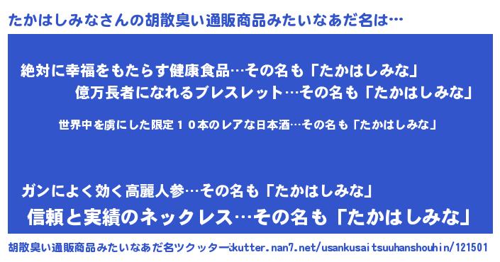 | 意味不明あだ名 | 『住所不定無職たかはしみな(59歳)』 |