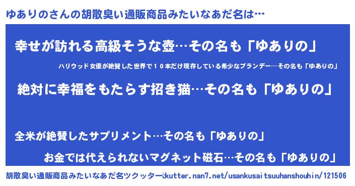| 意味不明あだ名 | 『永久保存ゆありの』 |