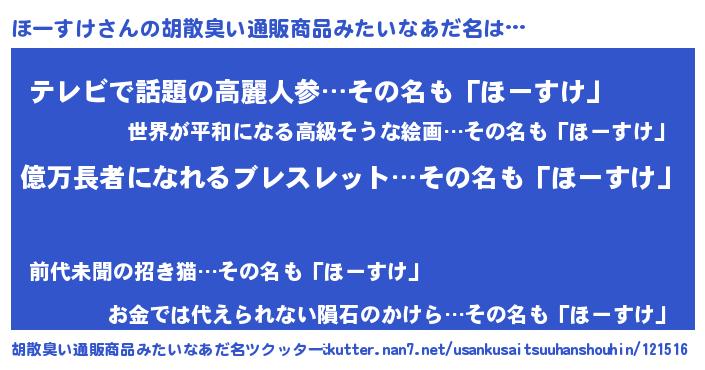 ほーすけさんの胡散臭い通販商品みたいなあだ名をツクッター!