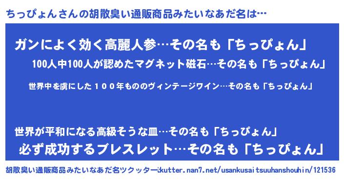 | 意味不明あだ名 | 『住所不定無職ちっぴょん(2歳)』 |