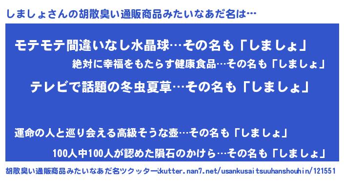 | ヘコむあだ名 | 『しまもー』『しましょ(小並感)』 |