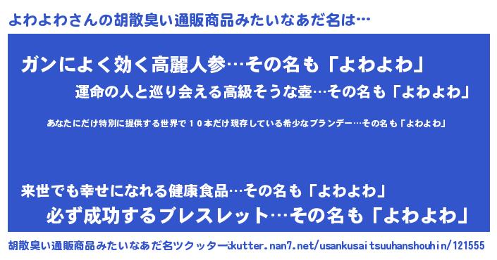 | ヒーロー風カッコイイあだ名 | 『仮面ヨワダー』『超時空戦士ヨワヨワ』 |