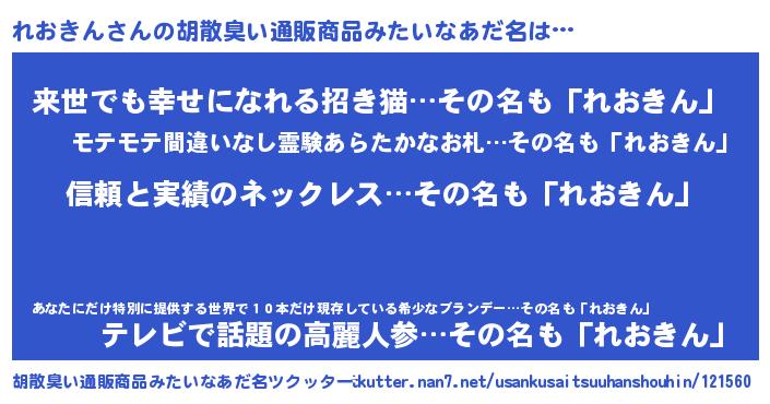 | 男性向けラノベタイトル風あだ名 | 『ダンジョンにれおきんを求めるのは間違っているだろうか』 |