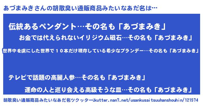 | 男性向けラノベタイトル風あだ名 | 『あづまみきに滅ぼされるだけの簡単なお仕事です』 |