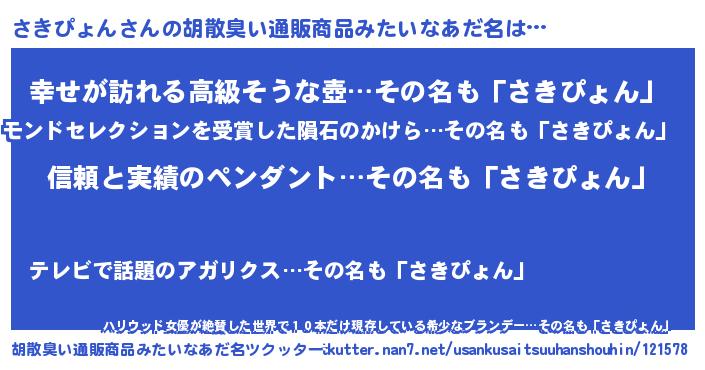 | 意味不明あだ名 | 『とにかく怪しいさきぴょん』 |