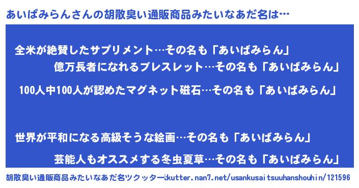 | ヒーロー風カッコイイあだ名 | 『正義の使者あいばみらん』 |