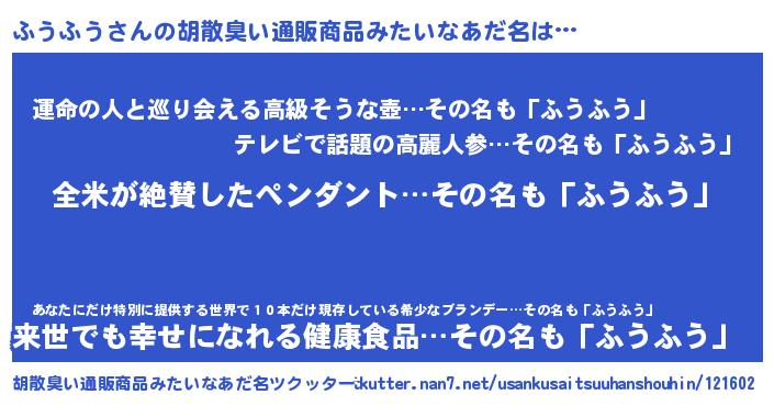 | ヘコむあだ名 | 『ふうっちょ』『なまこ酢』 |